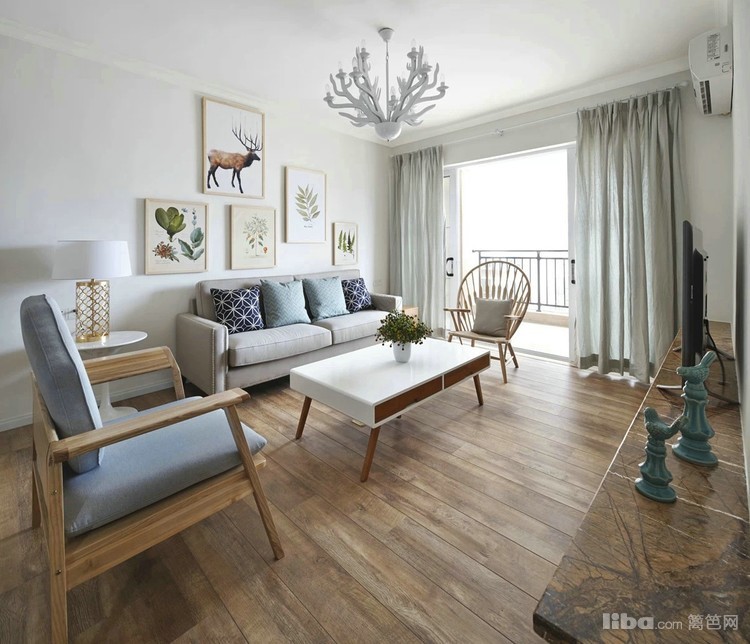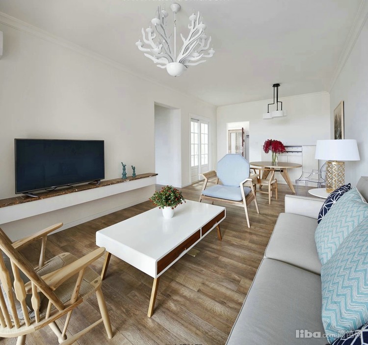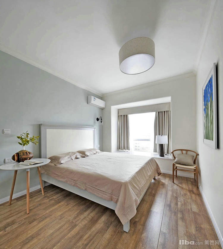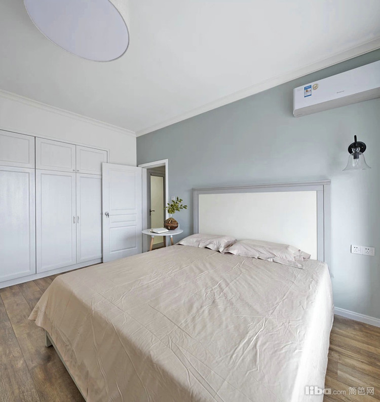 在顶面上就使用了简单的石膏线,主卧采用了蓝白分色,采用大量原木色系的家具及北欧风格配饰,适合喜欢北欧、日式风格,或采光不好的房间借鉴参考。