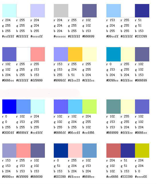 低亮度的蓝紫色显得很有分量,而高亮度的蓝紫色显得非常高雅。在网页中,蓝紫色通常与蓝色一起搭配使用。