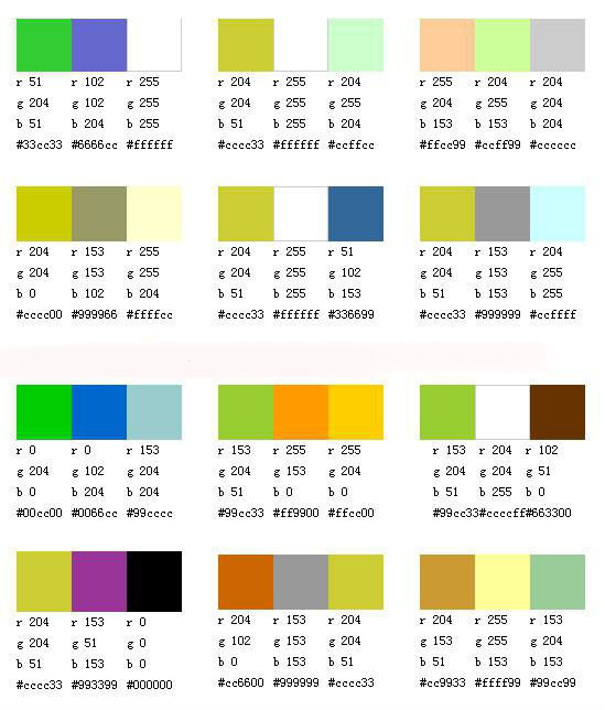 在网页中,黄绿色通常与蓝色搭配使用。总的来说,黄绿色主要用于表现温暖亲切的感觉或高科技神秘虚幻的感觉。