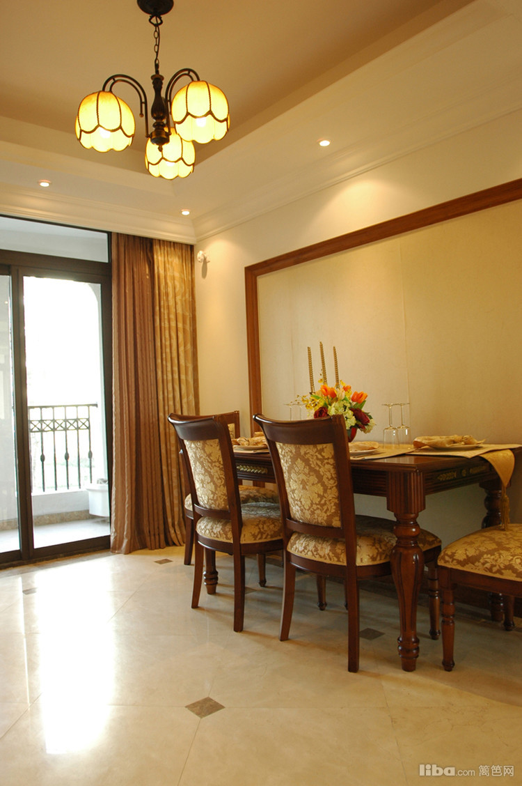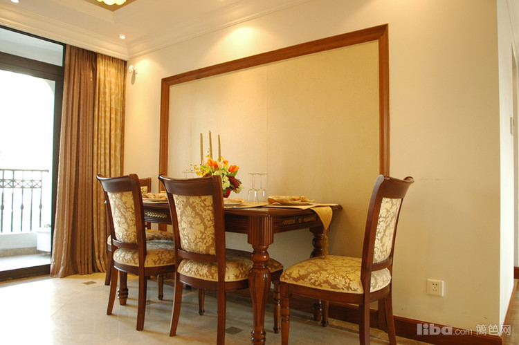 餐厅延续了客厅的装饰风格,餐桌靠墙放置,留出了宽敞的活动空间。