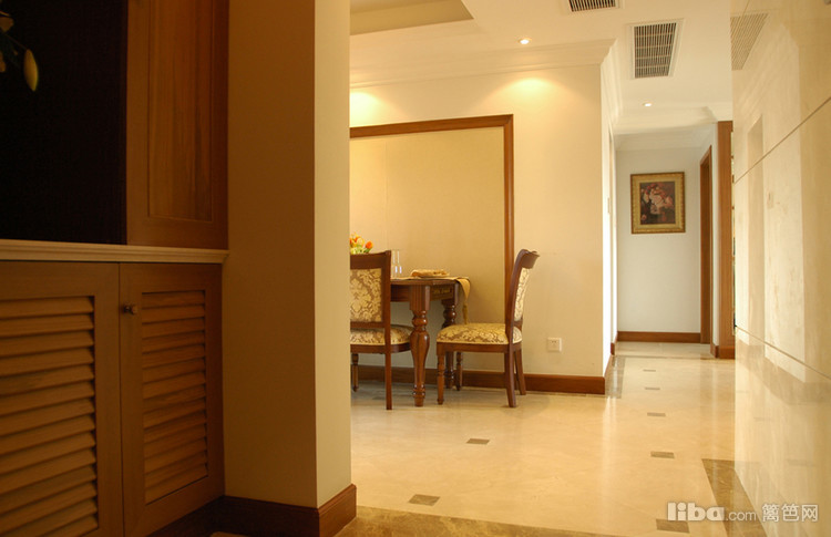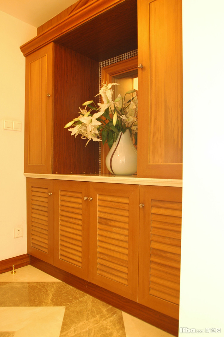玄关处的定制玄关柜使用半开放的设计,提高其功能性。