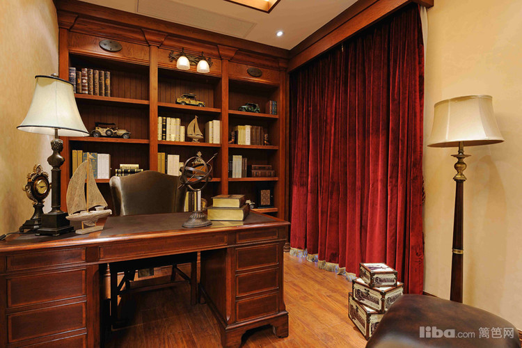 进入书房就给人一种稳重和踏实的感觉,整面墙的书架堆满了书籍,整个房间都带有一种书香的气息。