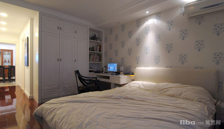 床头柜、书桌、书柜和衣柜一体化设计,真正实现了多功能设计,同时储物空间也很足够。