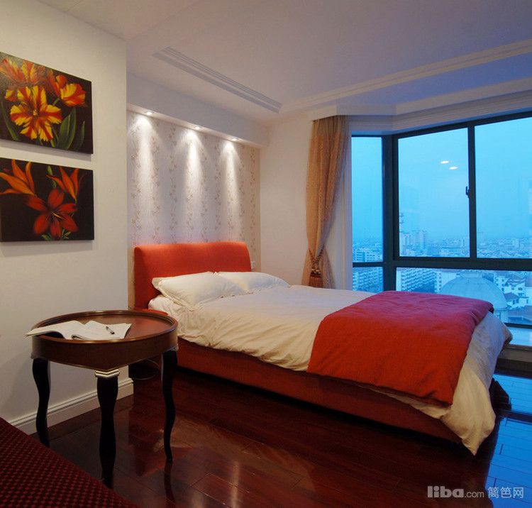 父母房间的装饰素雅温馨,巨大的落地窗保证室内有充足的光线