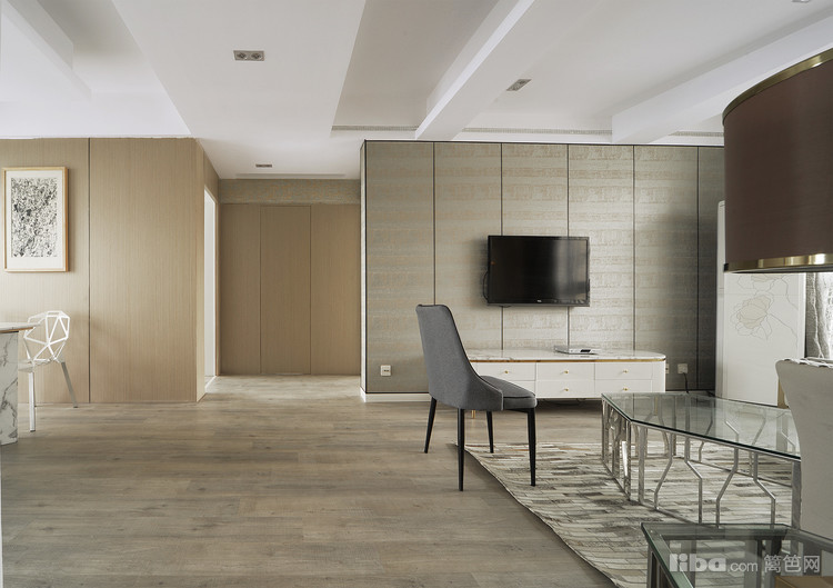 空间大量使用木饰面板,营造温馨舒适的居家氛围。