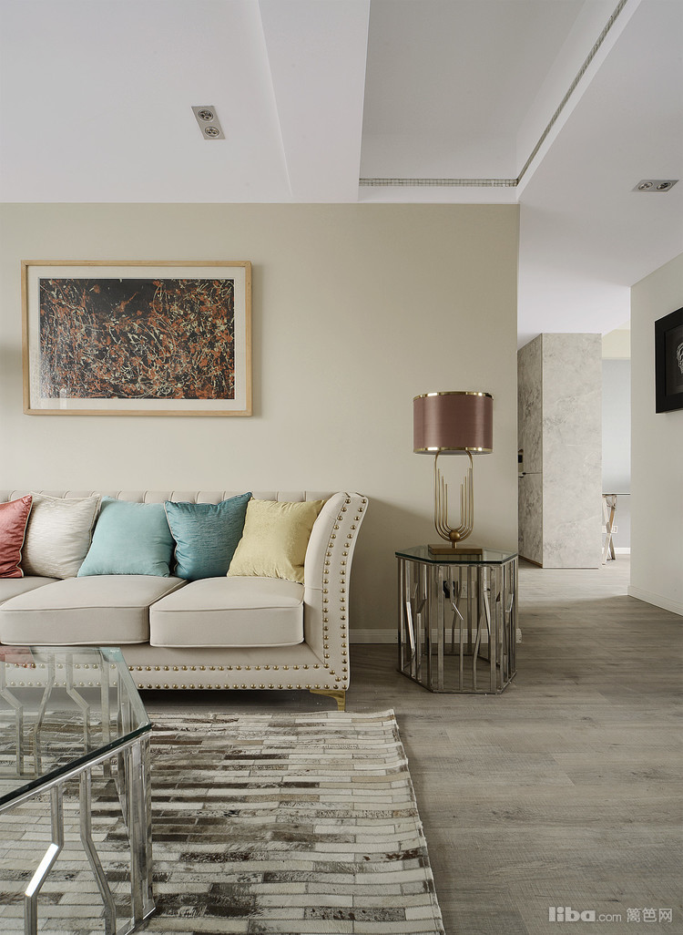 整个空间多种材质搭配在一起统一又不单调,素色的墙面温暖舒适,组合沙发增添了趣味。