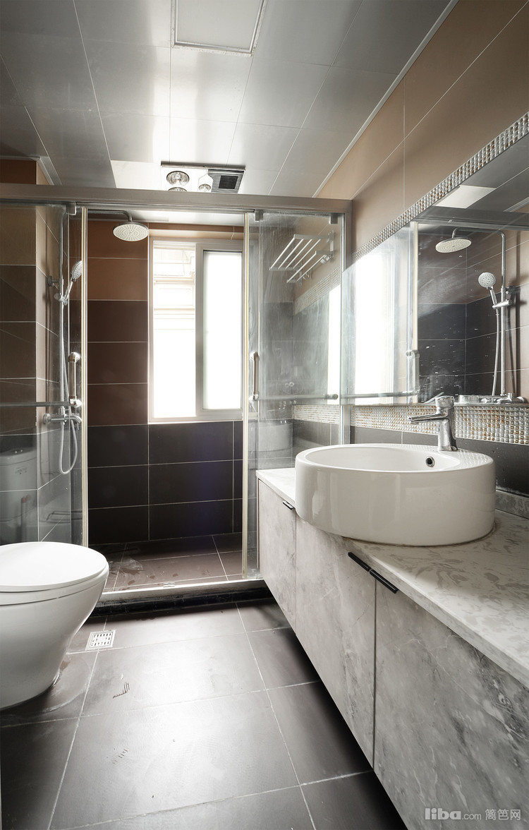 卫生间干湿分离的做法有效隔绝湿气的蔓延,巨大的梳妆镜搭配马赛克墙砖可以放大空间感。