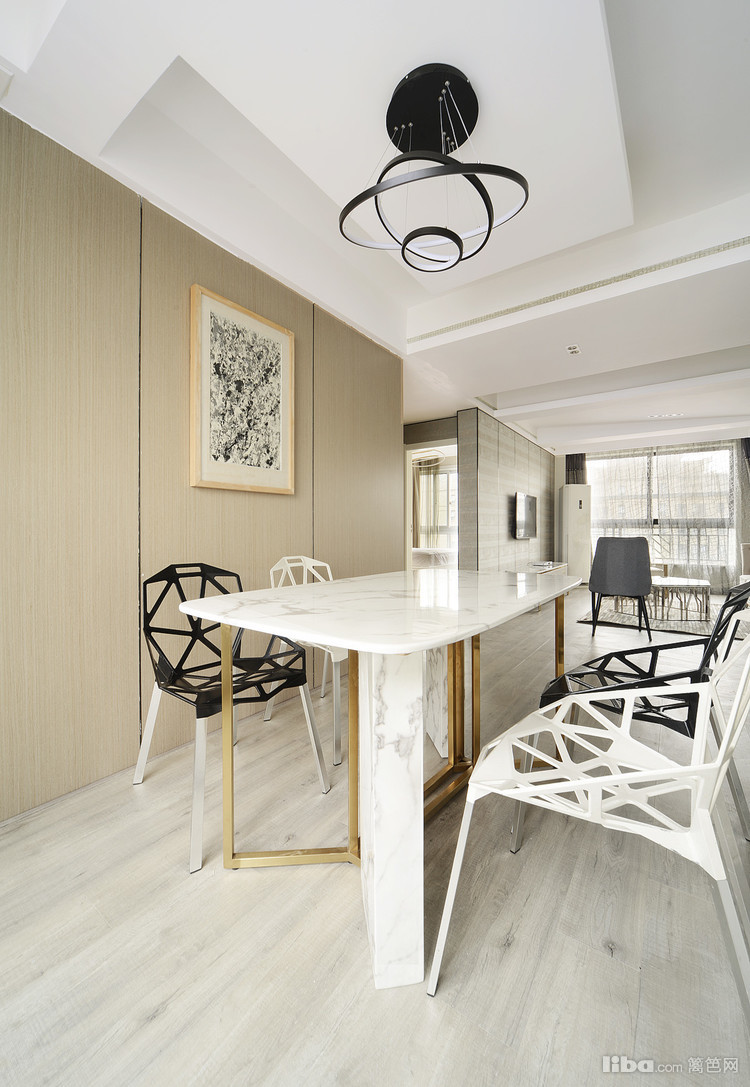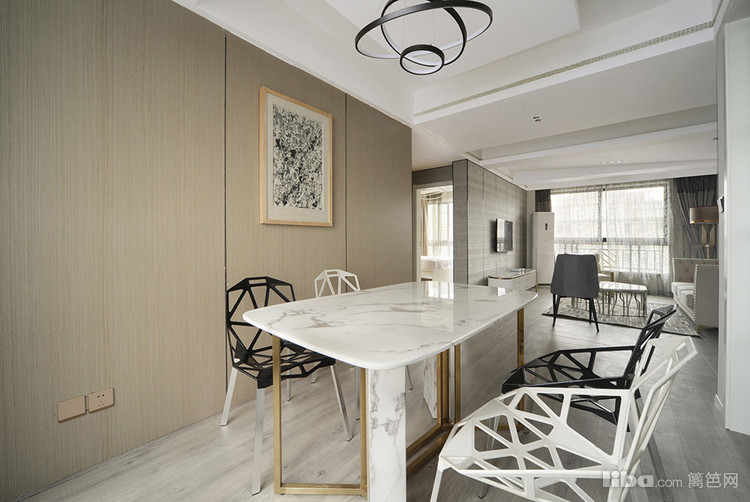 同样简约的餐厅,大理石餐桌为其增加了温润质感。