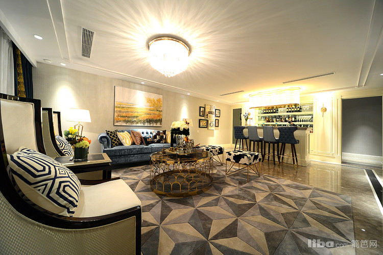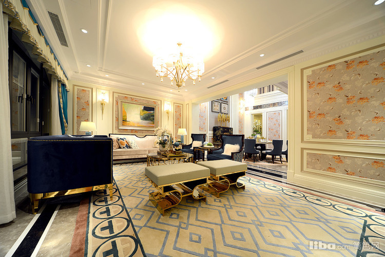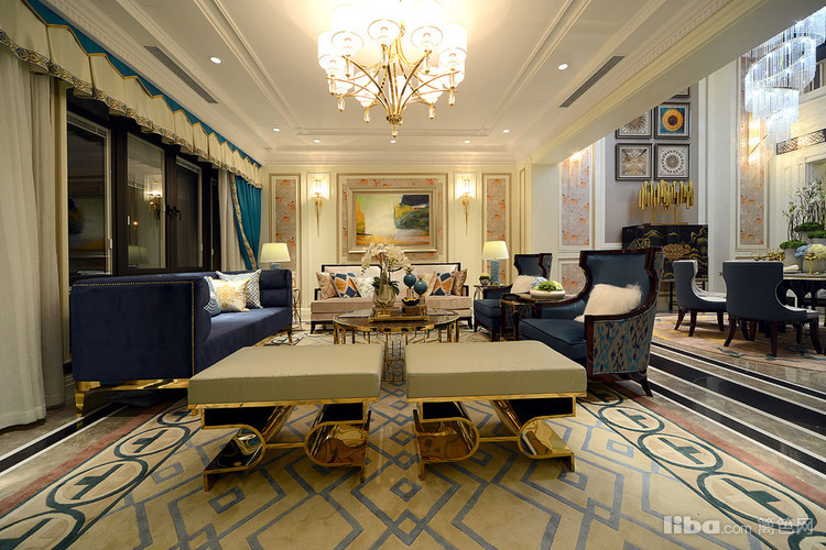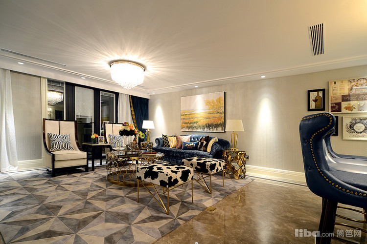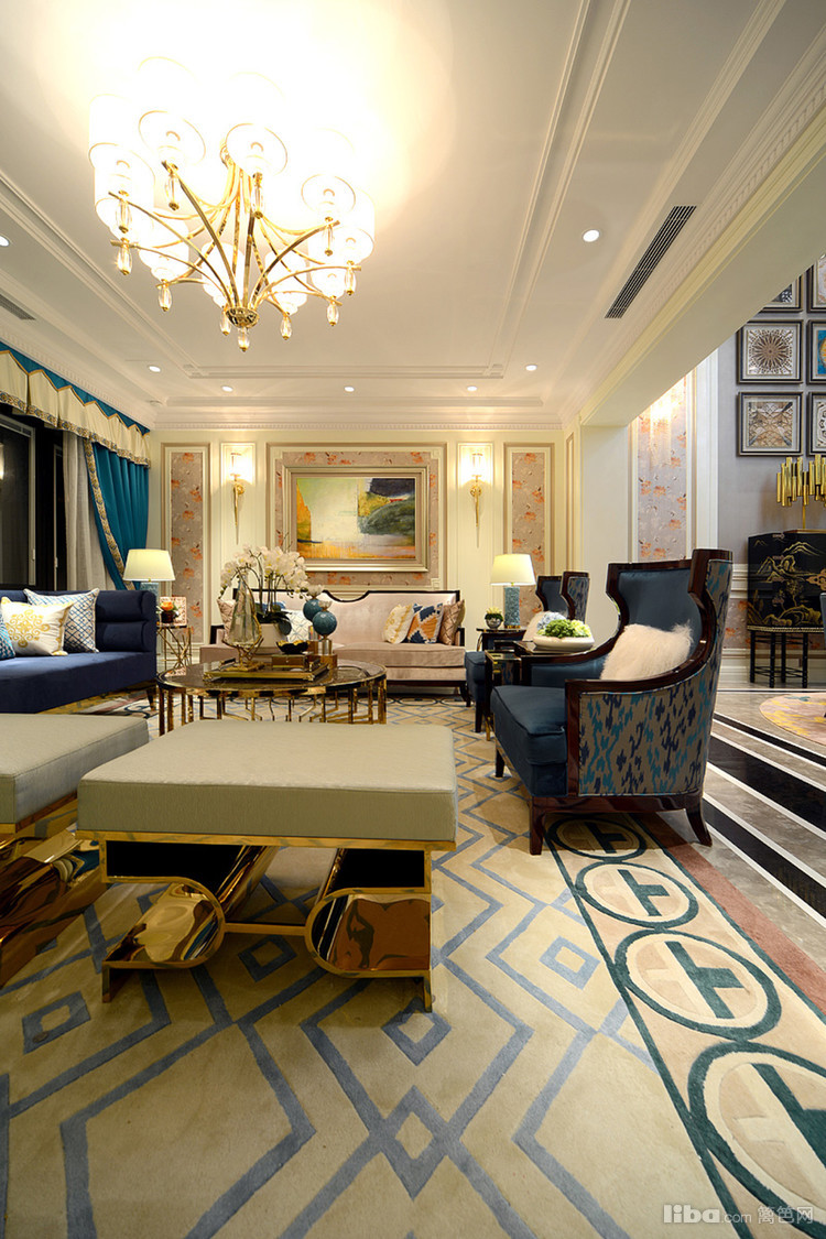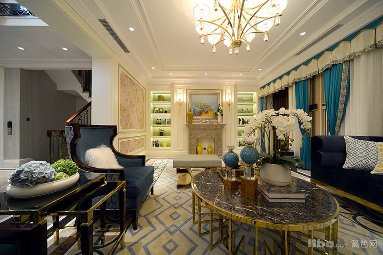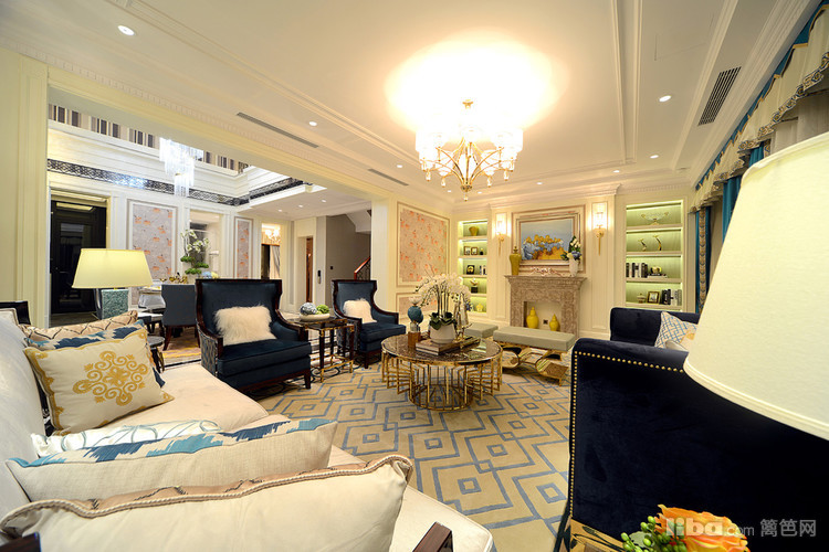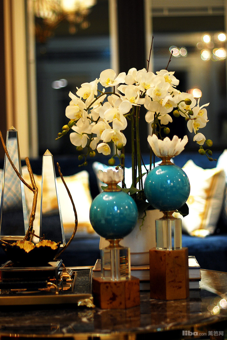 客厅用蓝色为基调的软装搭配凸显出了整个空间的独特的精致的空间。