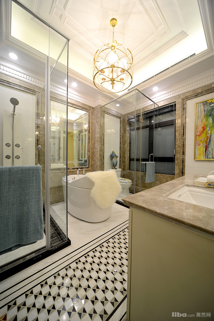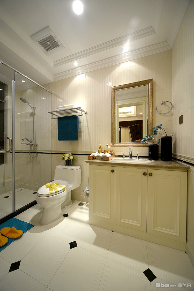 卫生间区域采用了台盆柜及合理的空间规划以及暖色调的色彩搭配。打破了传统卫生间冰冷的感觉。