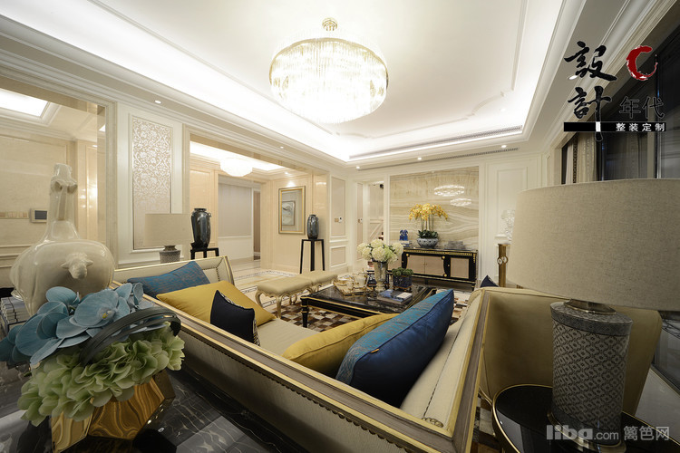 浅显的颜色加之过度式的蓝色和金色软装配饰的点缀让空间给人以柔美和安静的氛围。
