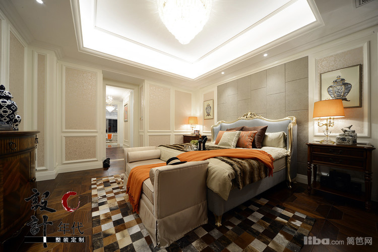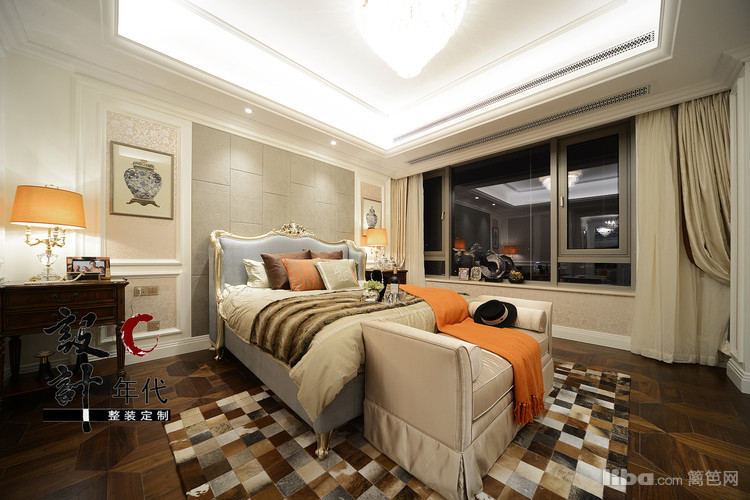 爱马仕橙的点缀给温馨的主卧空间带来了别样的时尚体验。