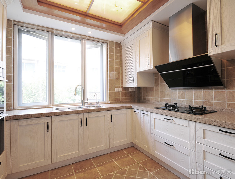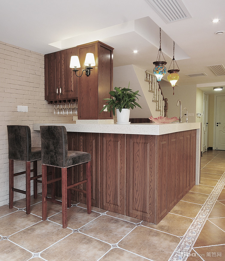 厨房的墙面多用简单的几何图形以及线条装饰,使得室内更美观、自然。温馨柔和的灯光,营造出温馨、自然的室内效果。