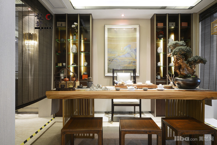 檀木质感的摆件,呼应绢布画吊灯,点染双亲房的私密空间。