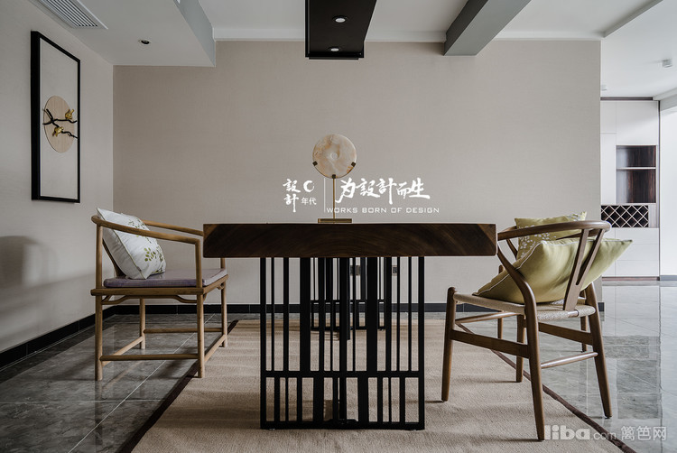 书房区域位于二楼中间的部分,设计师巧妙的把新中式的风格加入在整个设计作品当中,在色系和摆件上面巧思妙想增添了一大亮点。