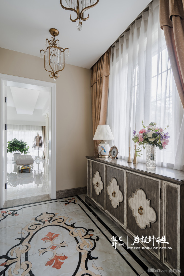 罗马柱、壁炉、白色石膏线条、水晶灯勾勒出奢华的欧式风格