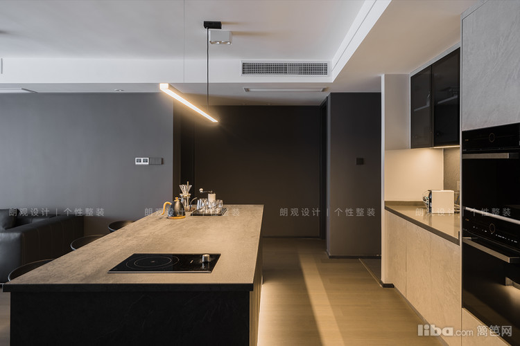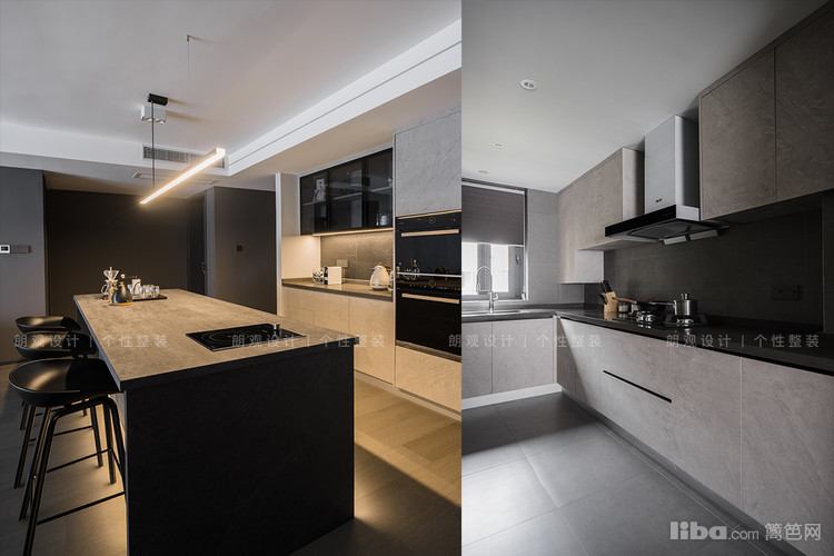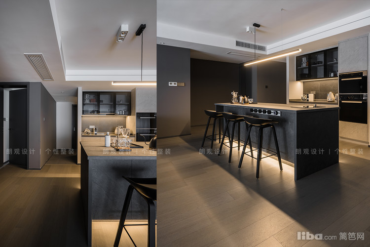 餐厅则利用客厅的部分面积,为业主实现中西厨的需求。餐厅与西厨组合,增加高柜和岛式操作区,形成的环形动线,增加互动性和操作性。