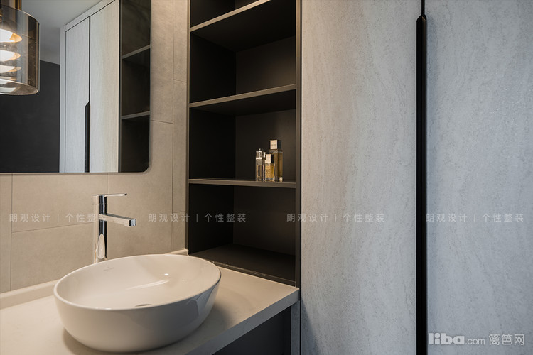 为保证台盆区域的干净,在旁边设计了衣柜和壁龛,方便业主搁置洗漱用品。