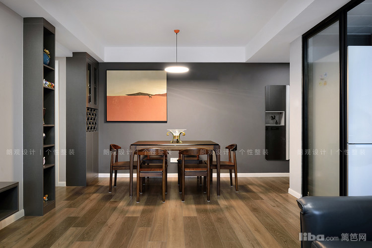 木质餐边柜也采用同色系的灰色,两种材质在同一空间的碰撞,瞬间提升了餐厅质感。