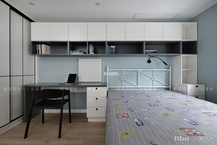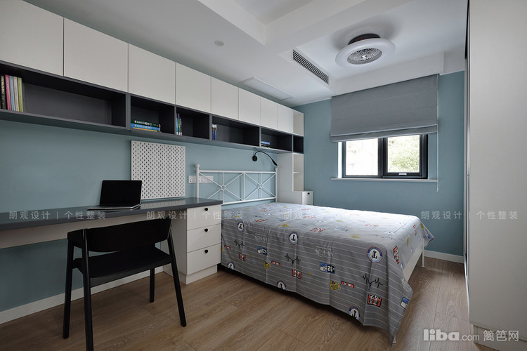 儿童房区别于其他空间,选择了清爽的蔚蓝色作为主色调,为孩子提供一个静心安逸的小空间。