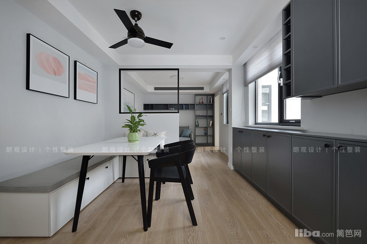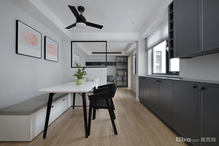 设计师在窗户的位置利用原始户型中的承重墙做了一排餐边柜,大大提高了空间的实用性。