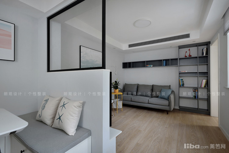 书架采用了局部背板做法,空间更加通透灵活,不死板。