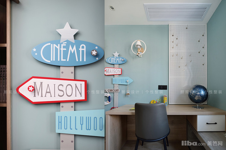 书桌的旁边,设计师用现浇水泥做了镂空卡座,方便家长辅导孩子学习。
