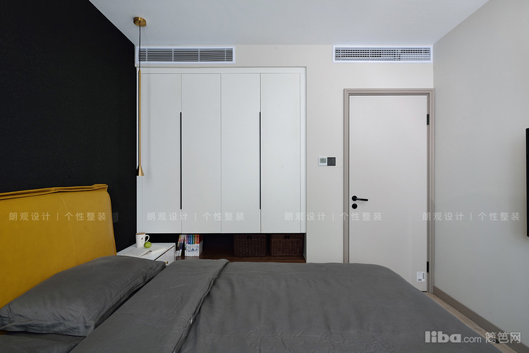 为了避免衣柜与床头柜“打架”,设计师将衣柜底部直接做成镂空开放式