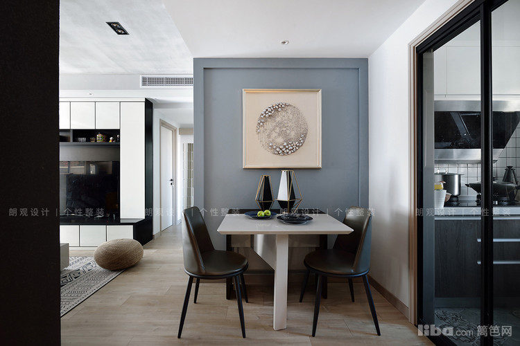 将厨房外的过道改造成餐厅,将原始墙体结合客厅过道定制柜作为餐厅背景墙,用温柔静谧的蓝灰色渲染用餐氛围,餐厅就这样诞生啦!