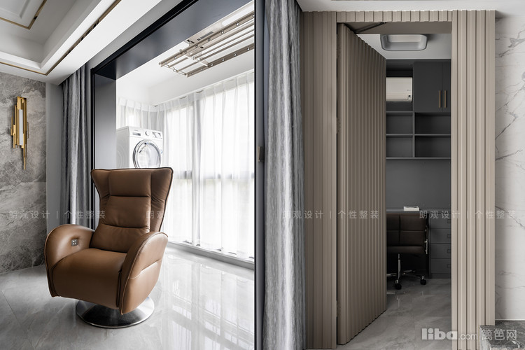 由于吊顶会带给空间一丝压抑感,而加高的套装门则轻松平衡这种压抑,无形中拉高空间。