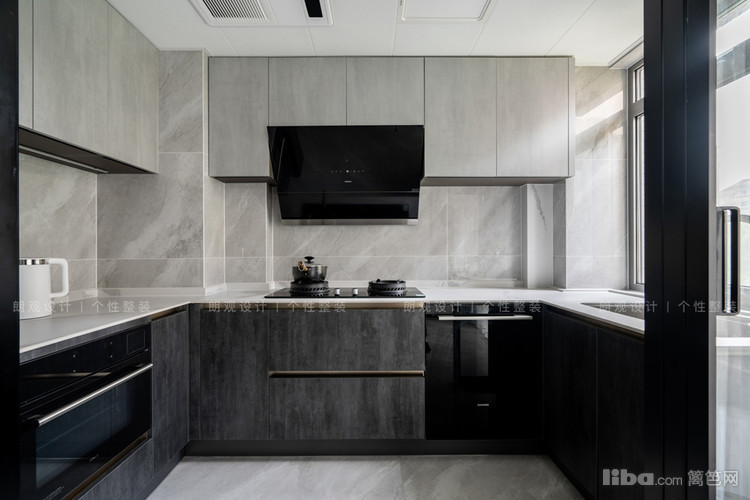 厨房与餐厅动线明确,为保持空间的开放性,厨房采用了透明三联动移门,既可以有效防止油烟,又可以保证空间的通透性。