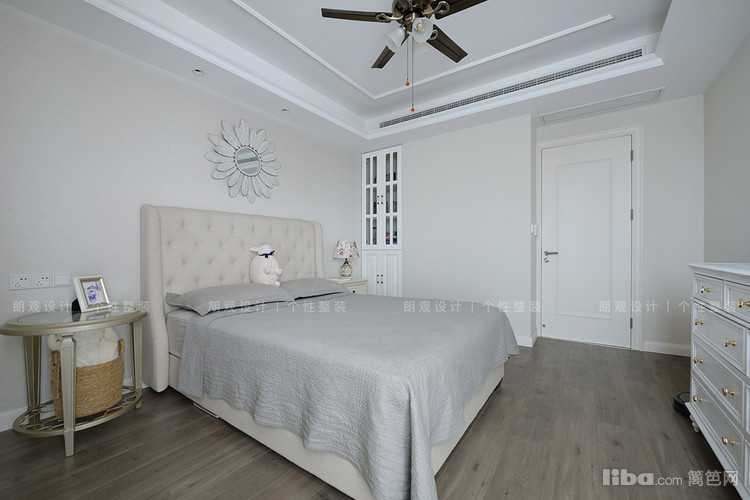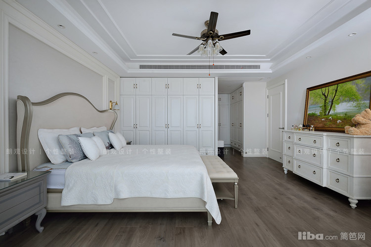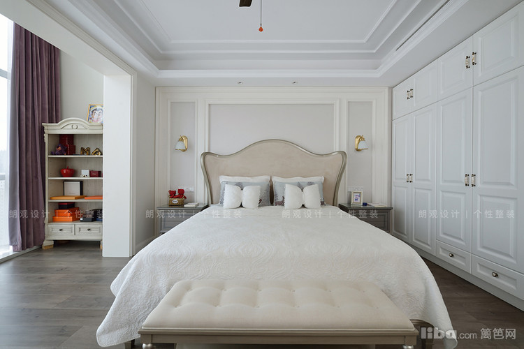 主卧以舒适为主,素雅的墙面用石膏线条做勾勒,搭配美式家具,散发着精致与华丽的魅力。大大的落地窗使卧室在阳光下尽显温暖通透,恰到好处的轻奢感也满足了屋主对经典的追求。