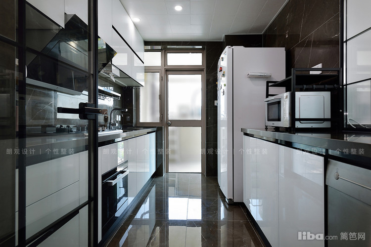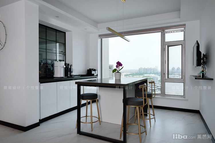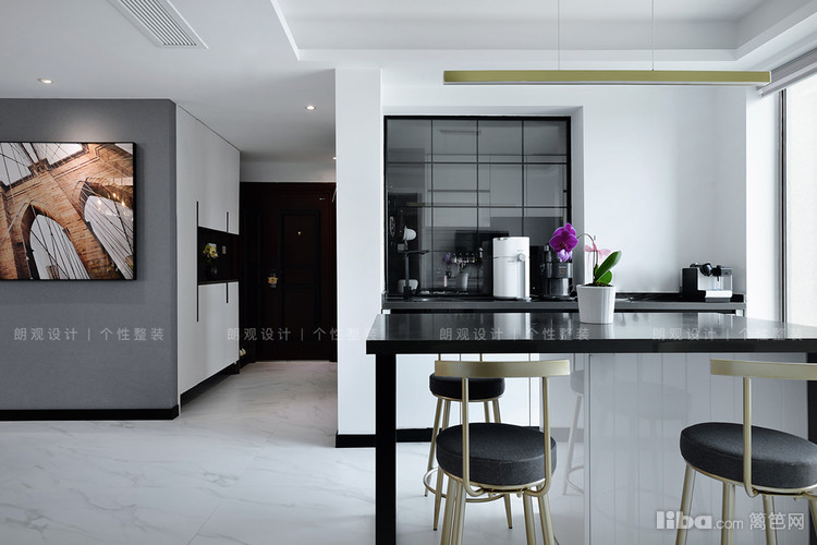 为保证中西厨的互动,设计师用玻璃材质贯通空间,便于业主在厨房做饭的同时也能参与到家人的其他活动。
