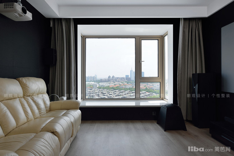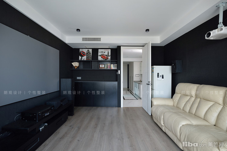 影音室吊顶增加了吸音棉和隔音毡,墙面也采用了黑色的吸音板,不会打扰家人或邻居休息。