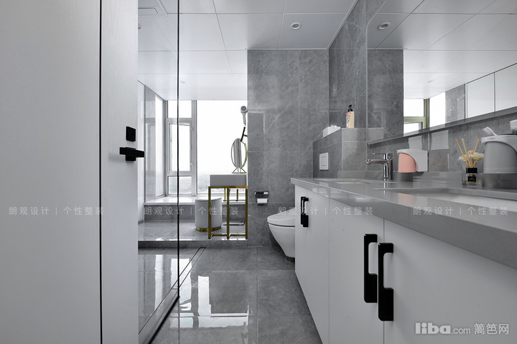 主卫自带一个小飘窗,设计师顺势而为,将女主人的梳妆台搬进了主卫,