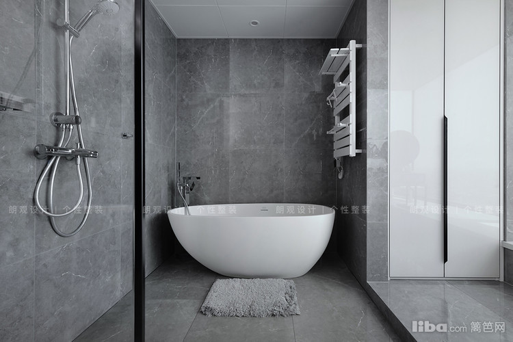淋浴和浴缸双重选择,洗去一身的疲乏,设计师在这里仅用一扇透明玻璃门区分主卫的干湿区,空间更加通透。