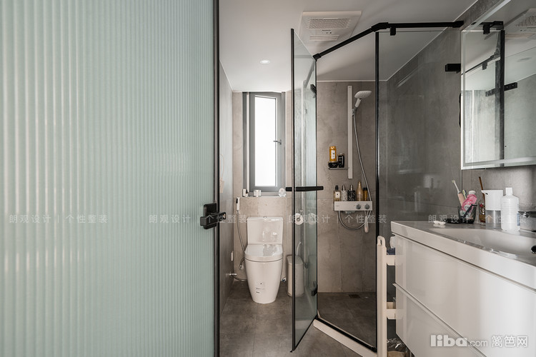 卫生间采用长虹玻璃门,避免了公共区域空间的割裂,形成开阔流畅的视觉动线。