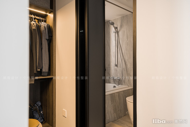 主卧进门处增加了衣帽间,放置业主当季衣物,开放式衣帽间造型上更为率性,灵活弹性的收纳方式