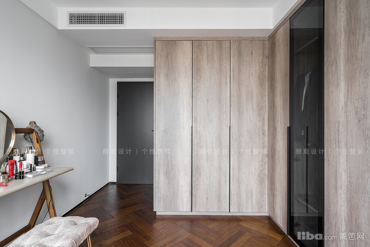 将闲置的次卧改造成衣帽间,定制顶天立地的衣柜,放置大量的衣物。