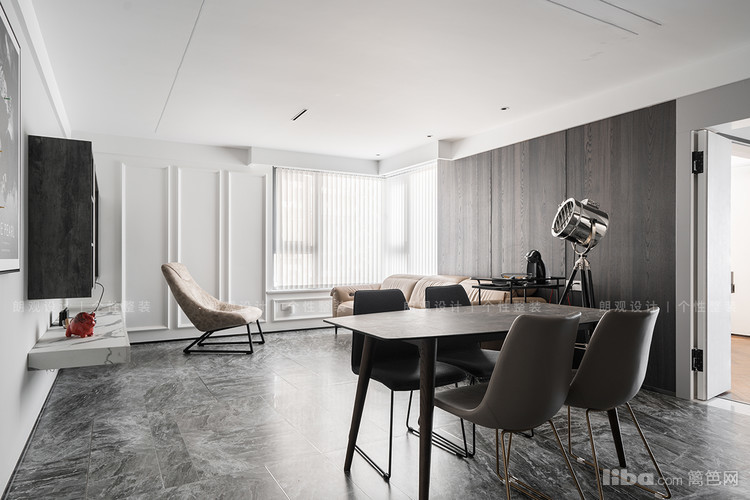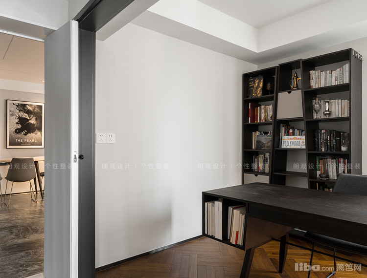 书房采用开放式的布局,可以避免小空间带来的压抑感,同时黑色展示柜和同系列书桌,延续了客厅冷冽风,空间感更强烈。
