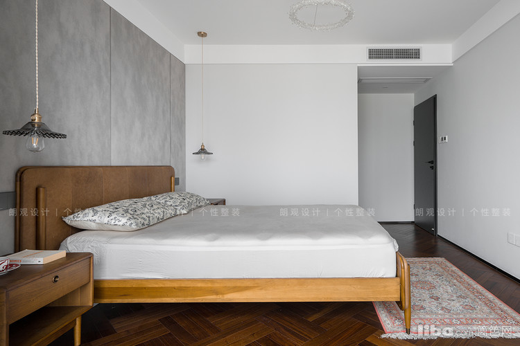 主卧融入了波西米亚风,无论是做旧的人字拼地板、靓丽复古的床具,又或是极具艺术感的精致小吊灯,无一不充斥着浪漫、热情的另类高级感。