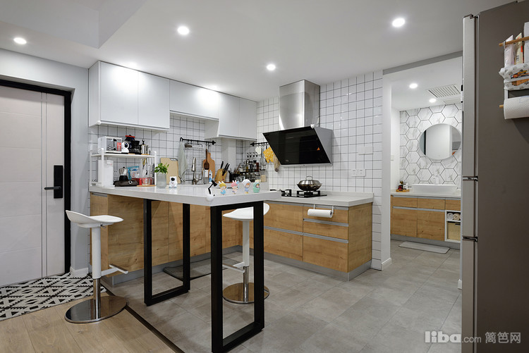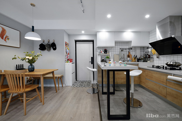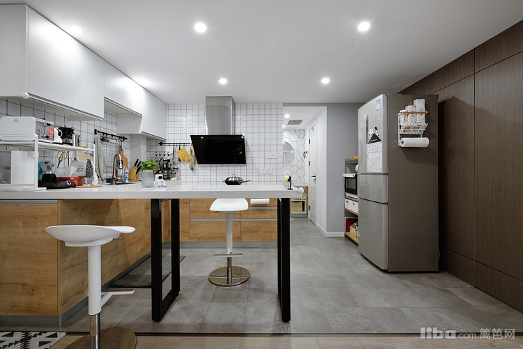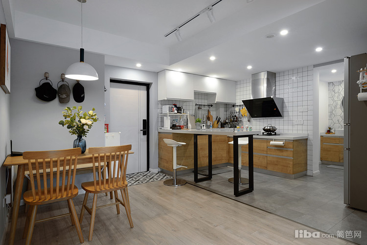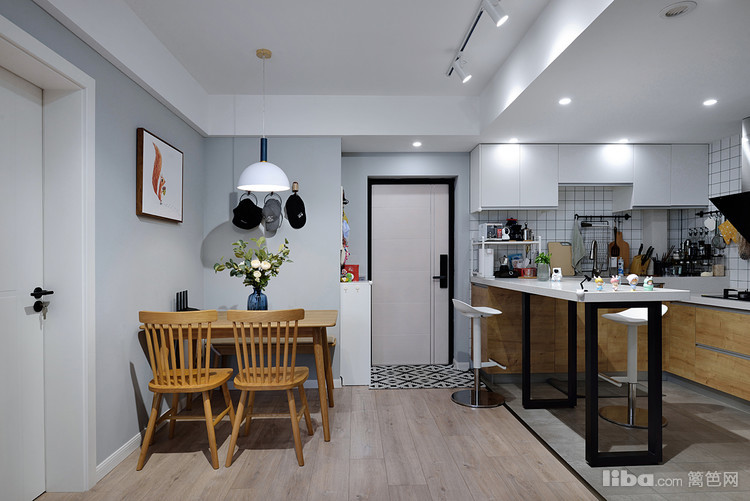 餐厨位于同一区域,整洁干净的厨房为用餐提供了一个理想的环境,将烹饪和用餐两个场景捏合在一起,营造出其乐融融的家居氛围,烟火气十足。