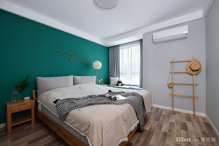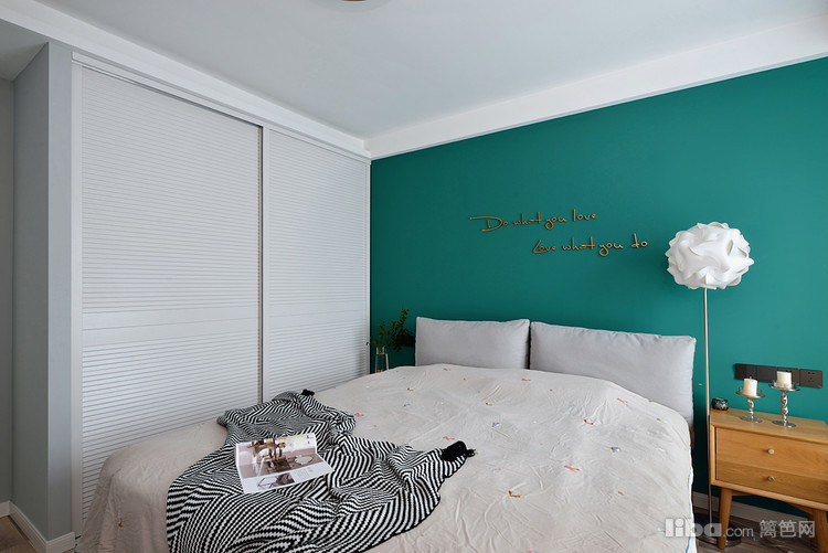 主卧背景墙的墨绿色,颜色新颖,质感十足。卧室的布置突显舒适和功能性,营造良好的入睡环境。