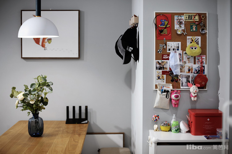 墙面的强电箱和弱电箱影响美观,两幅相呼应的装饰画做掩饰,简简单单的两幅画增加空间的灵动性和趣味性。