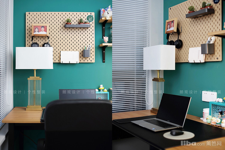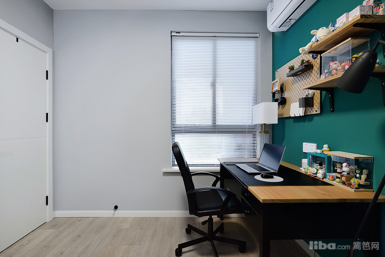 书房延续了主卧的格调,同样用墨绿色做主色调,一张简单的书桌,时尚静谧的书房便脱颖而出。
