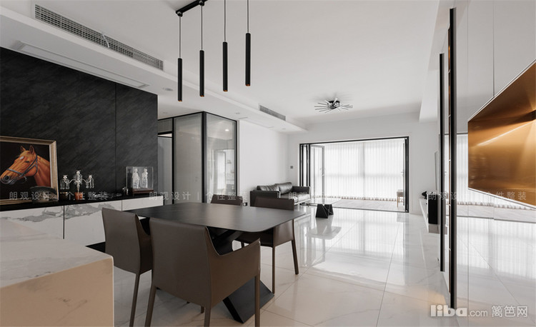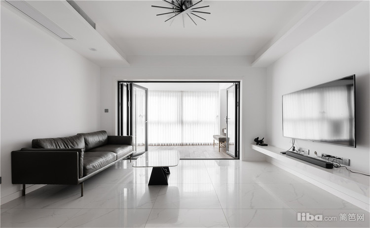 客厅给人一种简而不凡的感觉,设计师单纯使用黑白色调,利用影调,线条,明暗反差塑造空间效果,简单却令人产生无限遐想。