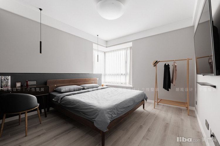 卧室整体空间选色素雅,尽显视线的静默与深沉,秉承简约舒适的理念,一张舒适的大床,极简的床头柜,搭配点光源灯装饰,为休憩提供一个宁静舒适的睡眠环境。