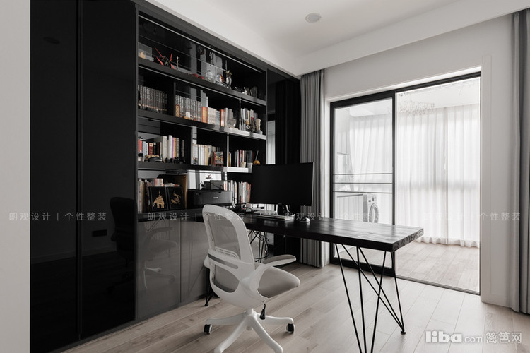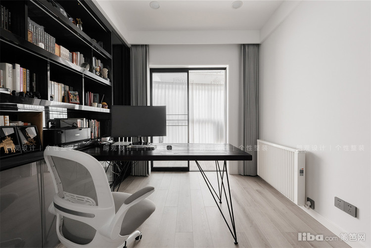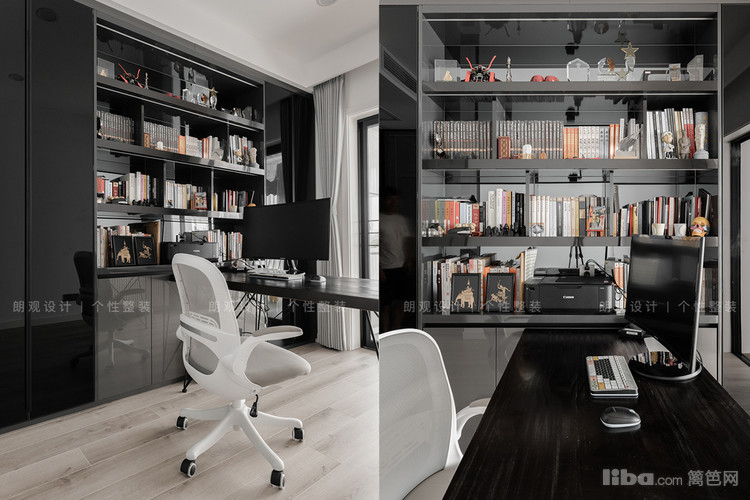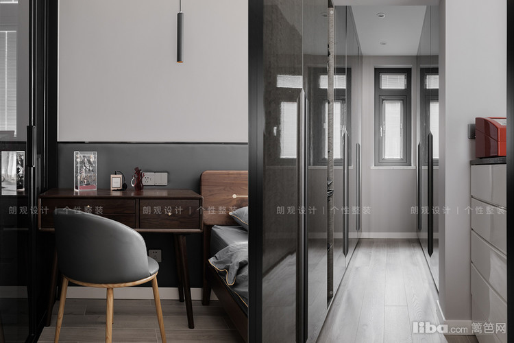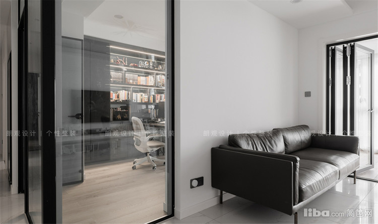 长长的过道链接了3个卧室,根据业主需求将次卧改造成书房。拆掉部分墙体,用玻璃材质打造半开放式的书房,将自然采光引进过道空间,极大限度地增加了室内光线流动。