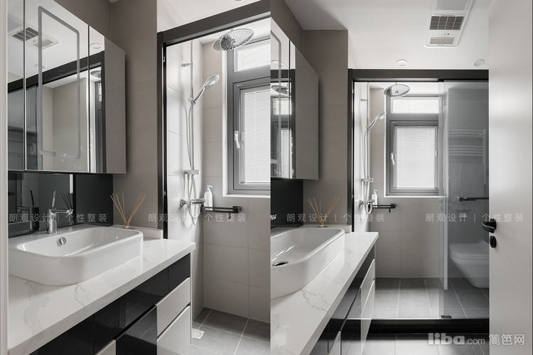 主次卫延续黑白色调,充分利用墙面空间,选择收纳功能与美观二合一的镜柜,不仅可以将各种瓶瓶罐罐藏进柜体,还能缓解卫浴间的狭窄感,从视觉上看更加明亮开阔。