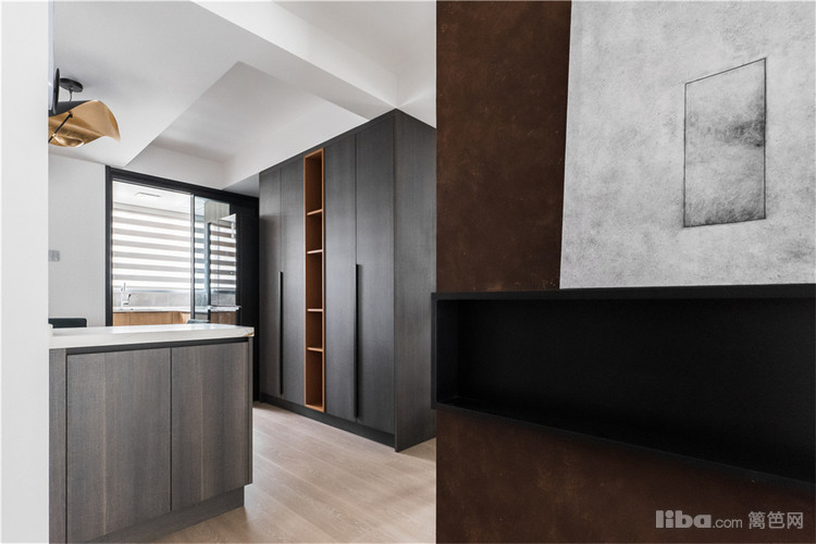 中西厨呈平行线布置,西厨日常只做些简单的西点和清洗工作,所以采用了开放式的设计。中厨油烟较大,采用玻璃移门做隔断,避免客餐厅被油烟侵扰。